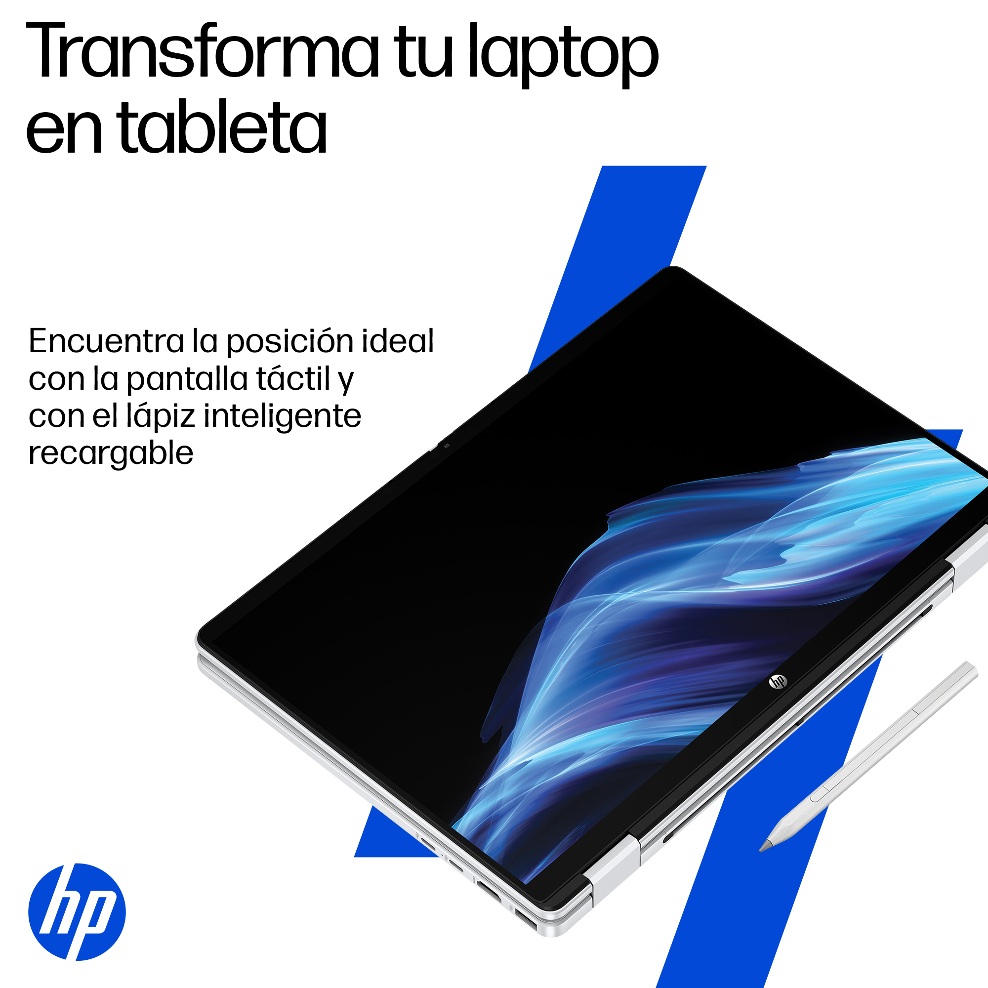 Transforma tu laptop en tableta, encuentra la posición ideal para trabajar o estudiar con la pantalla táctil y libera tu creatividad con el lápiz inteligente recargable.