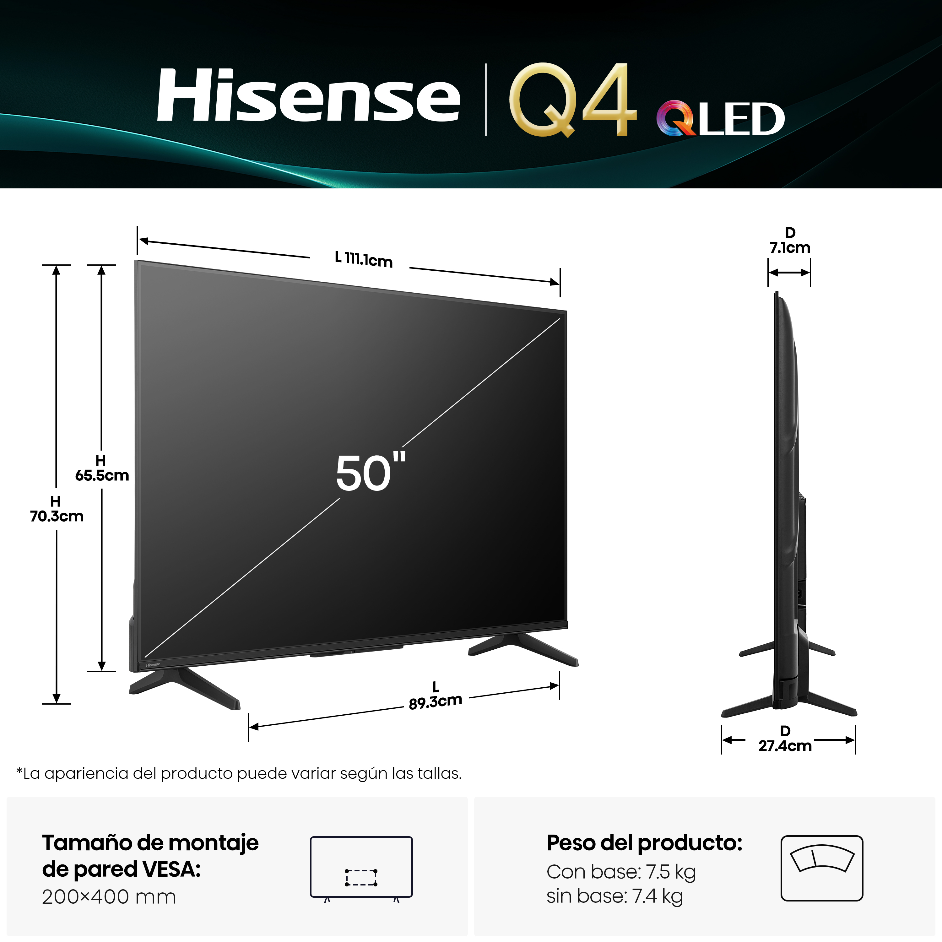 | TAMAÑO DE PANTALLA | 50" |