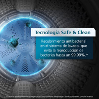 Disfruta de un lavado más eficiente y un mejor cuidado para tu ropa. Su doble filtro ZeroFuzz atrapa eficazmente pelusas y residuos, dejando tu ropa visiblemente más limpia. Además, el sistema Clean Care cuida las fibras de tus prendas, manteniéndolas como nuevas por más tiempo. Incorpora el Ciclo 4 Next Day, ideal para una mayor remoción de agua y la tecnología Safe & Clean, que ayuda a prevenir la reproducción de bacterias para una higiene superior