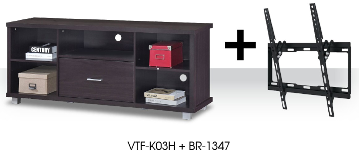 Optimiza tu espacio y renueva tu living con el Dúo Mesa para Pantalla Continental modelo VTFK03H junto al Rack de Pared Argom modelo BR-1345, una combinación perfecta de funcionalidad, diseño y organización.