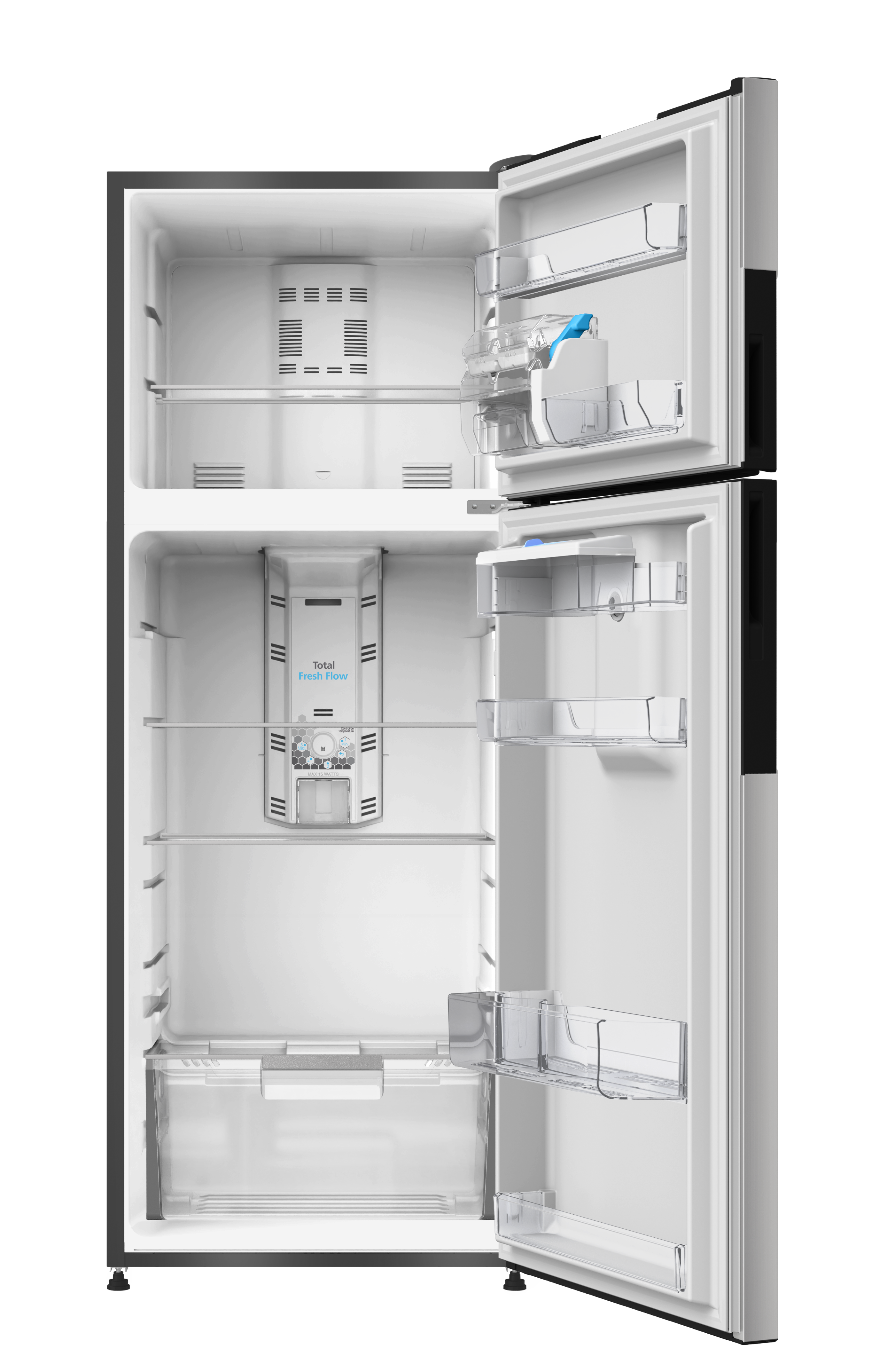 El sistema Total Fresh Flow, distribuye el aire frío de forma uniforme en el interior, evitando variaciones de temperatura y garantizando una frescura duradera en frutas, verduras y productos almacenados. Además, su amplia capacidad interior te permite organizar y guardar todo lo que necesites, con comodidad y sin sacrificar espacio.