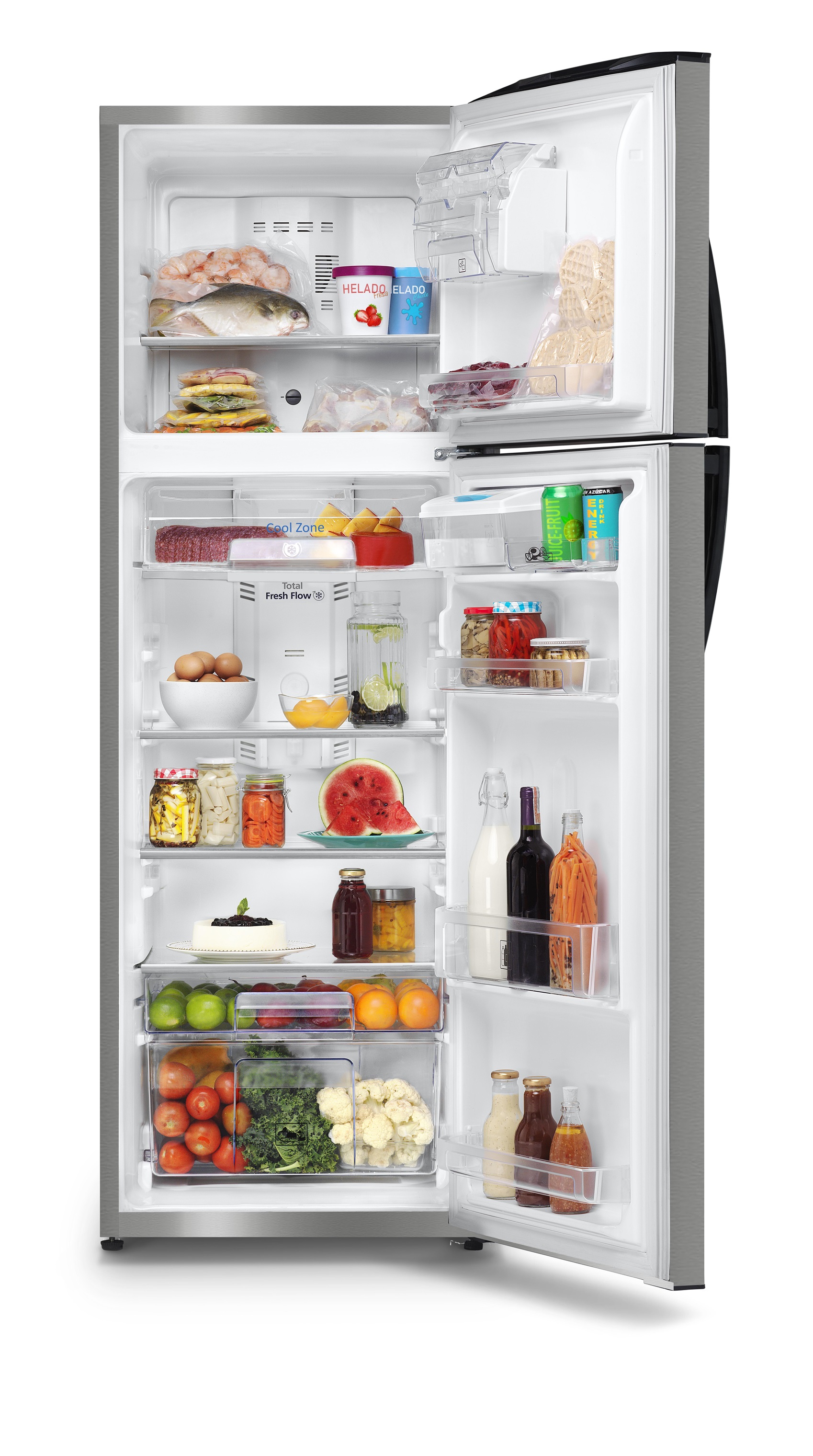 La refrigeradora Mabe de 11 pies está diseñada para brindarte un rendimiento superior y mayor conservación de tus alimentos. Su Tecnología Home Energy Saver garantiza un uso eficiente de energía, mientras que Total Fresh Flow distribuye el aire frío de manera uniforme para mantener tus frutas, verduras y alimentos frescos por más tiempo. Además, su moderno diseño con jaladera Full Grip y compartimientos bien distribuidos la convierten en la opción ideal para tu hogar.