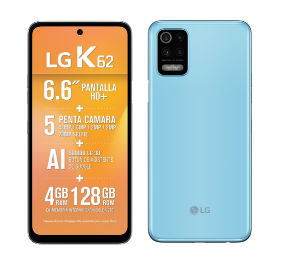 LG K62 con diseño innovador mate a prueba de huellas dactilares, pantalla Full Screen completa sin distracciones con un discreto orificio en la parte delantera, siente toda la emoción de las escenas de tus películas y juegos favoritos.